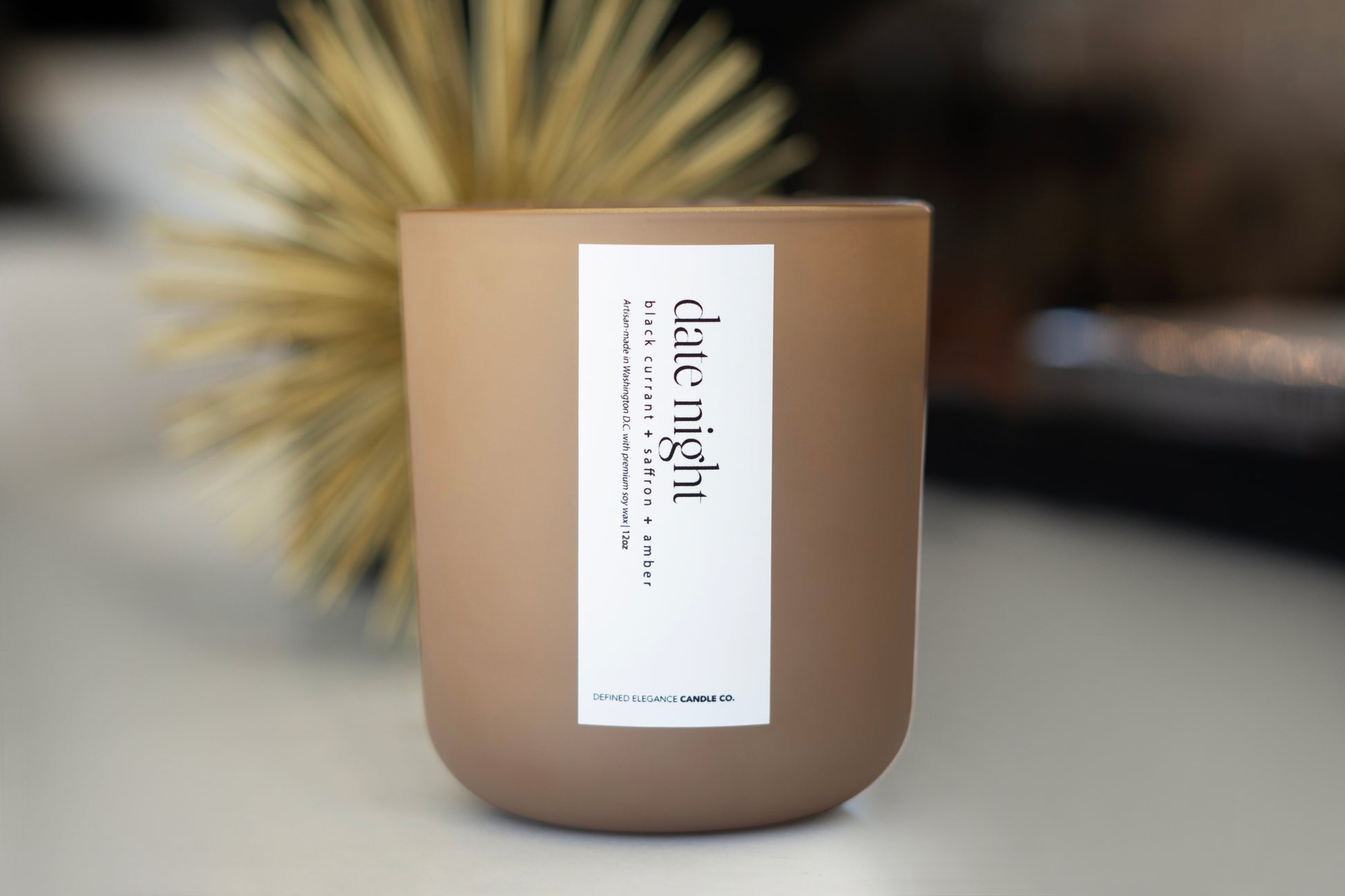 Our Date Night candle exudes scent notes of luscious black currant, exotic saffron, and warm amber, creating a rich and romantic fragrance that sets the perfect mood for an intimate evening. This seductive aroma fills the air with a luxurious and inviting ambiance, making every moment feel special.