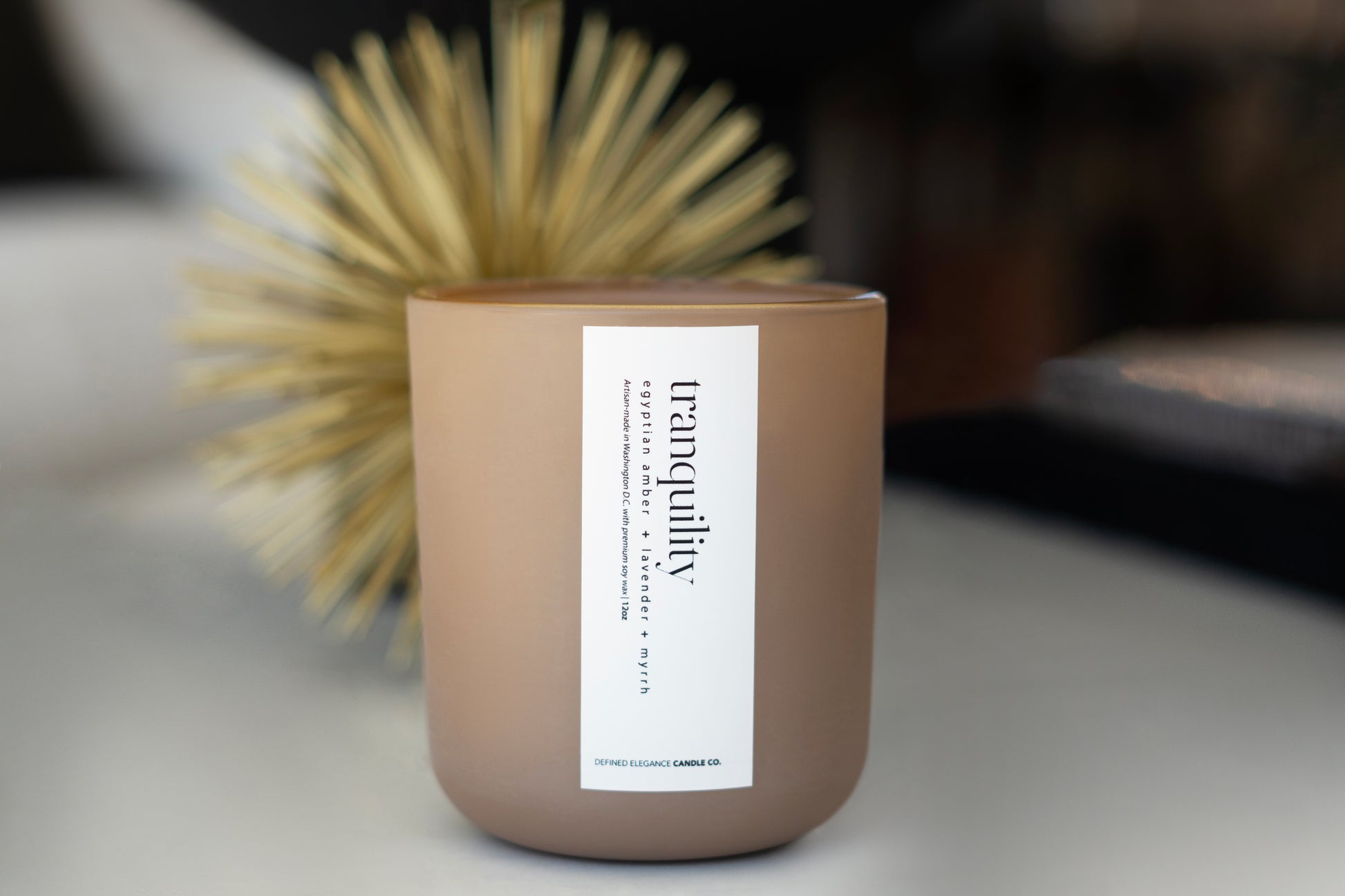 Our Tranquility candle exudes scent notes of soothing Egyptian amber, calming lavender, and rich myrrh, creating a serene and grounding fragrance. This calming blend helps to create an atmosphere of peace and relaxation, perfect for unwinding after a long day or during a moment of meditation.