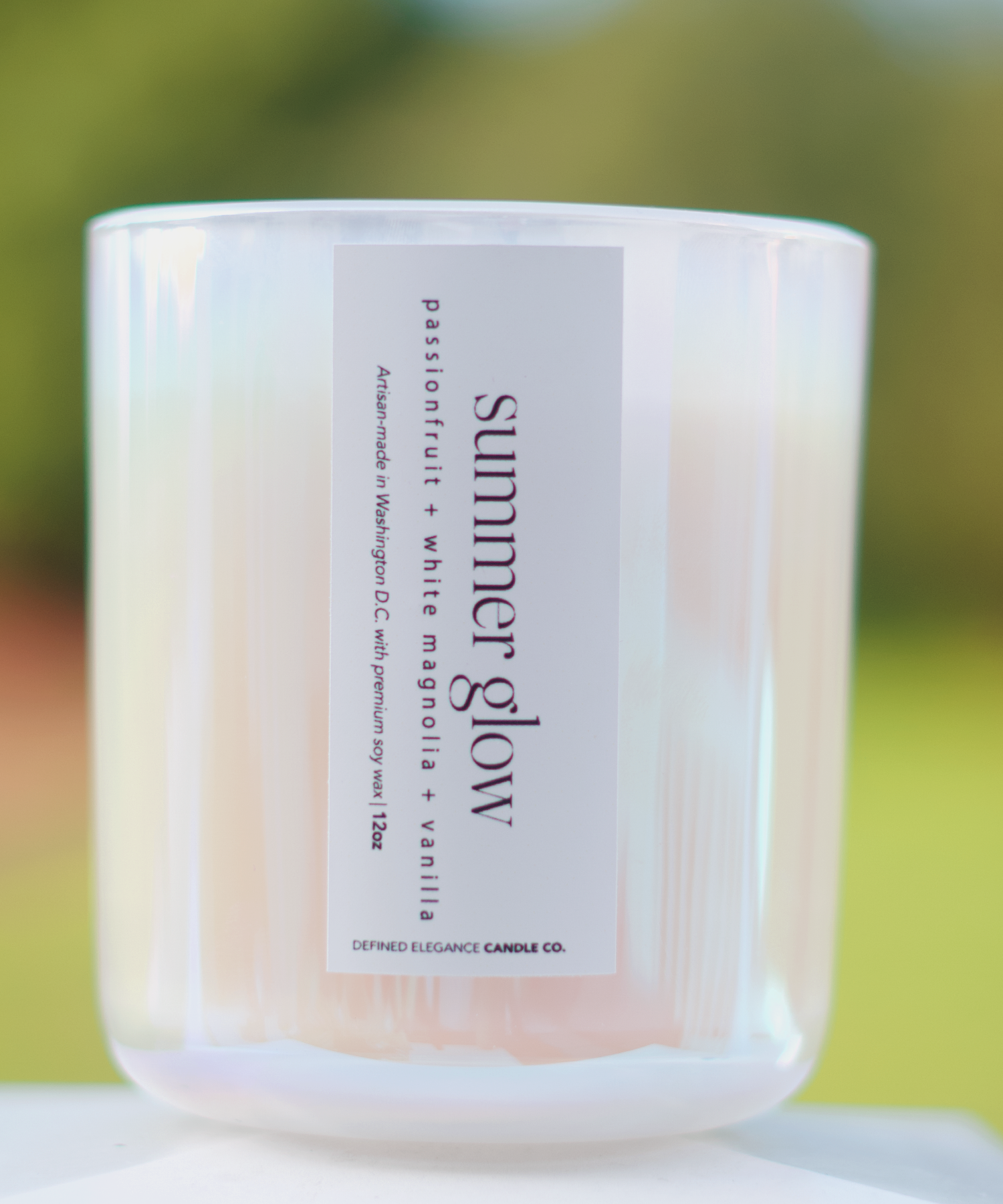 Radiate luxury with Summer Glow—a sensual blend of exotic passionfruit, soft floral magnolia, and smooth vanilla. This candle captures that golden-hour magic, when your skin glistens and your soul feels sun-kissed.