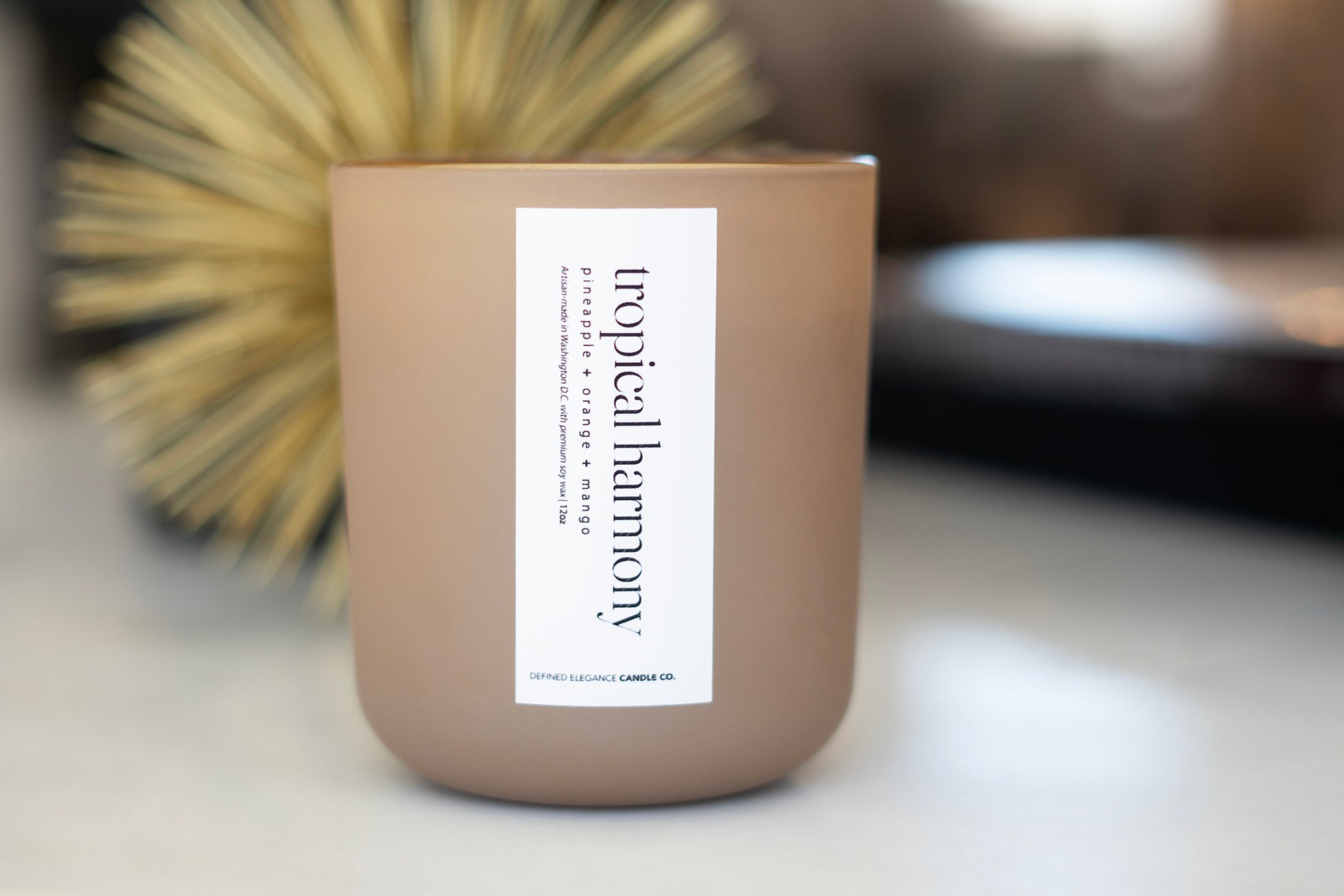 Our Tropical Harmony candle exudes scent notes of juicy pineapple, zesty orange, and sweet mango, creating a vibrant and uplifting fragrance that transports you to a tropical paradise. This fruity and refreshing aroma fills your space with sunshine and relaxation, perfect for brightening any mood.